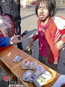 残疾乞丐向雅安灾区捐出两月乞讨所得