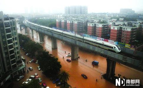 另有部分底洼的地方水淹过腰,公安出动冲锋舟营救村民。当地珠海电视台报道,该市南洋埔村水浸达3米,有1200多名村民受困。早上8点10分,记者在珠海大道南屏街口段看到,与珠海大道相连的濂泉路段因地势低洼,被暴雨泡成了一个长近百米、宽十五米的水塘,水最深处淹到膝盖位置,有多辆汽车开到这里因水浸而熄火。