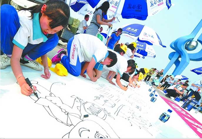 济南百名小学生百米长卷画安全
