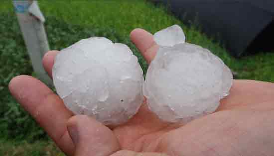 冰雹是一种严重的气象灾害,具有很大的破坏力。猛烈的冰雹可以摧毁庄稼,损坏房屋;特大的冰雹比柚子还大,可以毁坏大片农田和树木,甚至摧毁建筑物和车辆,致人死亡。冰雹出现时还常伴有阵性降水、大风、降温等,加剧灾害。