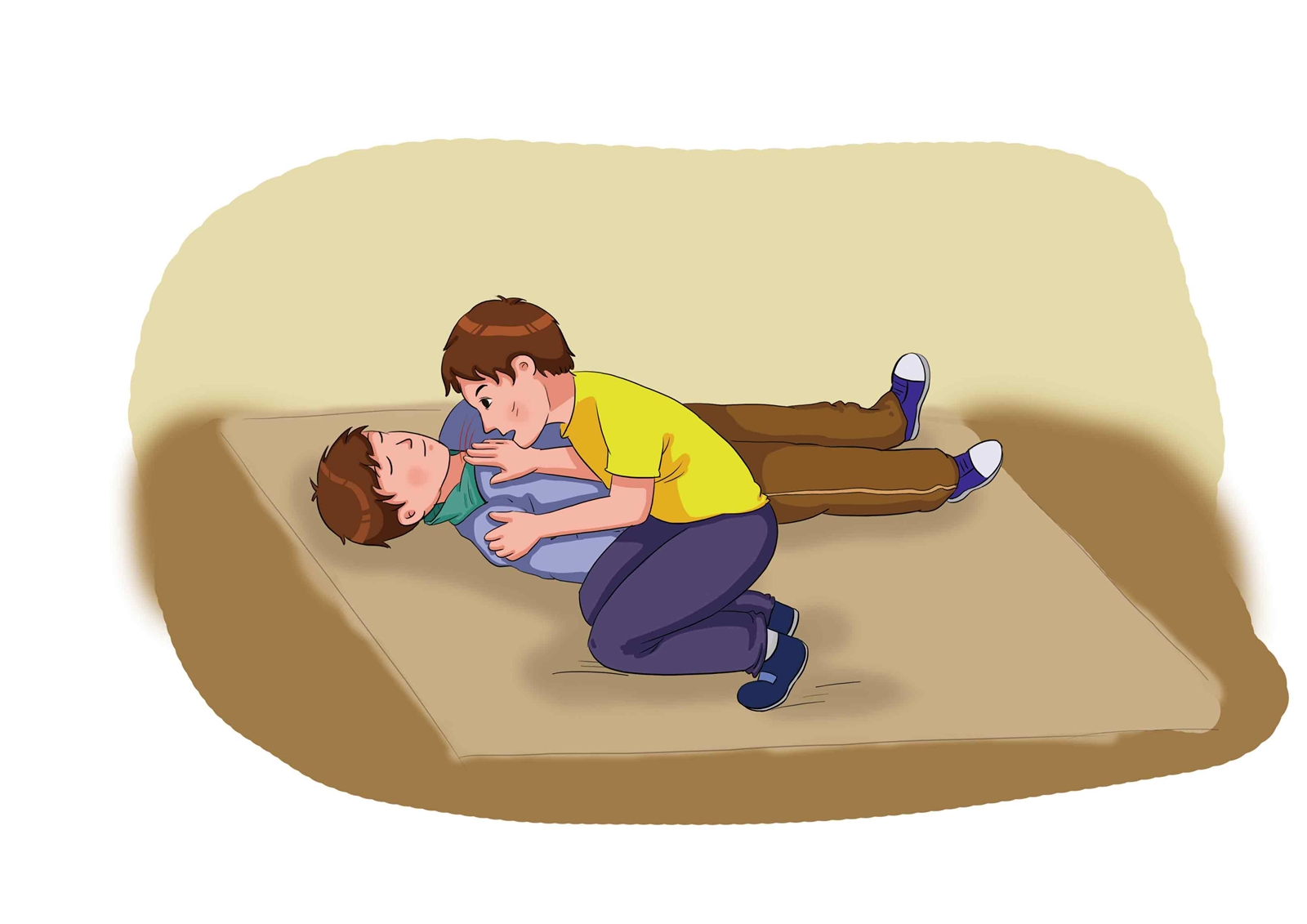 1.将伤者姿势摆正为仰卧位置,救援者应位于伤者右侧,以方便施救。