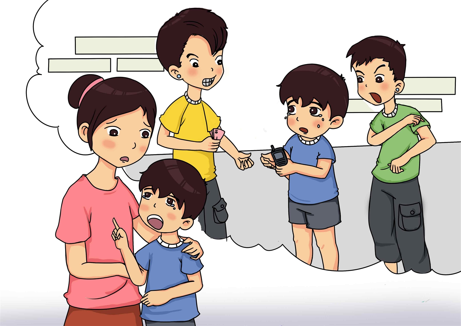 小宁被抢走钱和手机后,小宁母亲也不敢报警。她认为报警的话,万一歹徒报复孩子怎么办?多一事不如少一事。