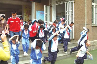 小学生参与“防震自救”大演习