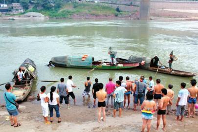 6月13日,打捞队正在打捞溺亡者,众人密切关注