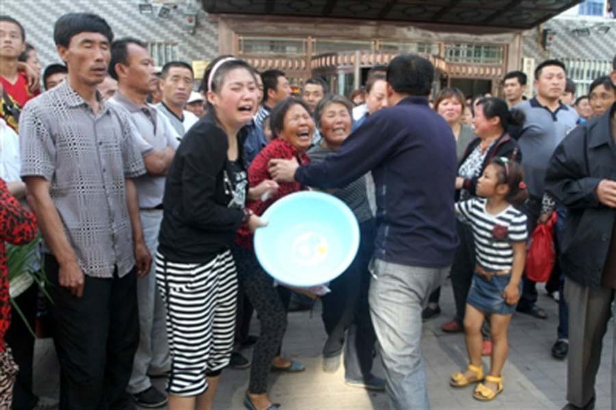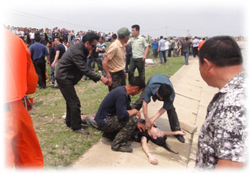 图为溺亡学生家属悲痛欲绝。