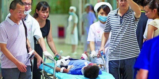 受伤学生被送往医院治疗。南都记者 王子荣 摄