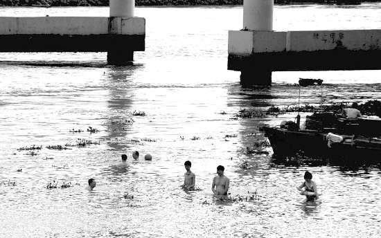 天气炎热还是有人冒险到江河“野泳”。