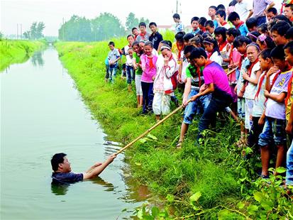 21日,襄阳市襄州区双沟镇第二小学组织学生在渠坝边开展防溺水教育活动,传授防溺水知识和技能,提高学生溺水险情自救自护能力,让每个学生安全度夏、度假。