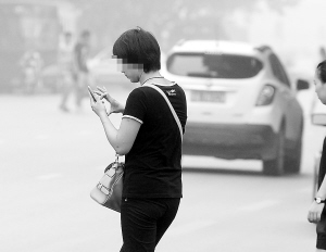 过马路还在低头看手机,太危险了!记者郄磊 摄