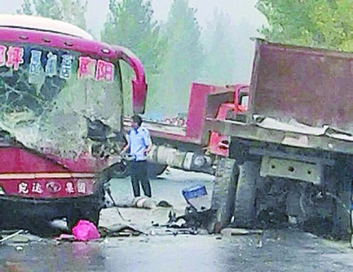 河南大巴车遭遇前后夹击 3名学生身亡