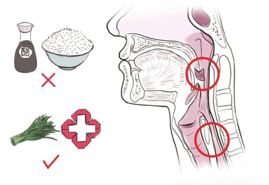 首先要做的就是停止吞咽一切东西,其次,需要弄清楚鱼刺是卡在了哪个位置上,我们喉咙里有三个容易被卡住的点,分别是在舌根和会厌交界处的“舌会厌谷”、扁桃体隐窝、咽喉部两侧的“梨状隐窝”。