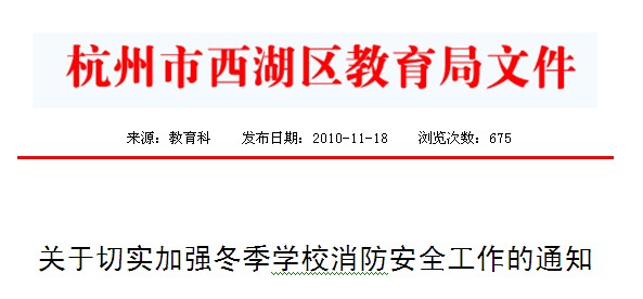 目前已进入秋冬季节,天干物燥风大,上海11.15大火更是敲响了冬季防火的警钟,为吸取教训,消除消防安全隐患,有效控制消防安全事故,确保师生生命安全,教育局要求各单位将消防安全作为本季度学校安全工作的重点来抓,现就加强冬季中小学及幼儿园消防安全工作通知如下: