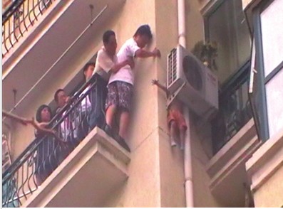 男童从8楼跌落卡7楼空调处 众邻居冒险相救