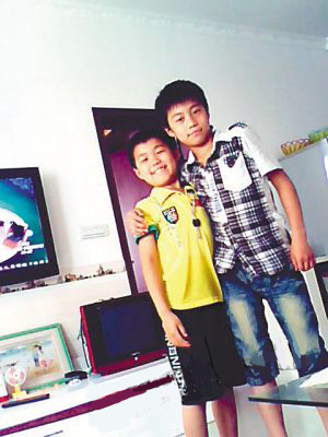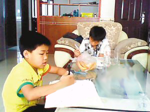 杨鑫(左)和米雨林兄弟俩在家做作业