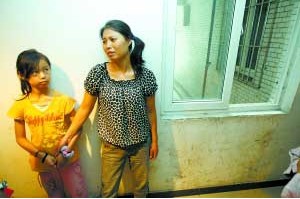 昨日,小旭的母亲站在7楼孩子坠楼的地方悲痛万分,身旁是小旭的姐姐