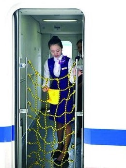动车配备的应急梯,主要用于列车出现特殊情况停靠于非站台处时,乘客可从动车上转移到地面。