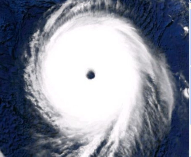台风眼通常位于台风中心平均直径约为40公里的圆面积内。由于台风眼外围的空气旋转得太厉害,在离心力的作用下,外面的空气不易进入到台风的中心区内,因此台风眼区就像由云墙包围的孤立的管子。它里面的空气几乎是不旋转的,风很微弱。台风眼其外侧100千米左右的地区是狂风暴雨区。