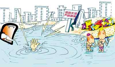 (4)对自己的水性要有自知之明,下水后不能逞能,不要贸然跳水和潜泳,更不能互相打闹,以免喝水和溺水。不要在急流和漩涡处游泳,更不要酒后游泳。