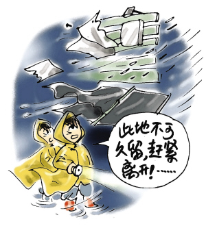 所谓风暴潮,就是当台风移向陆地时,由于台风的强风和低气压的作用,使海水向海岸方向强力堆积,潮位猛涨,水浪排山倒海般向海岸压去。强台风的风暴潮能使沿海水位上升5-6米。风暴潮与天文大潮高潮位相遇,产生高频率的潮位,导致潮水漫溢,海堤溃决,冲毁房屋和各类建筑设施,淹没城镇和农田,造成大量人员伤亡和财产损失。风暴潮还会造成海岸侵蚀,海水倒灌造成土地盐渍化等灾害。