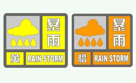 暴雨预警信号分四级,分别以蓝色、黄色、橙色、红色表示。