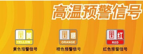 高温预警信号分三级,分别以黄色、橙色、红色表示。