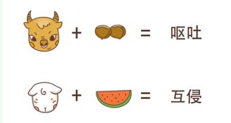 牛肉、栗子食后会呕吐;羊肉、西瓜相会定互侵。