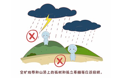 5、空旷地带和山顶上的孤树和孤立草棚等应该回避,因为它们易遭雷击。这时如在其中避雨是非常危险的,尤其是站在向两旁伸展很远的低枝下面。但是,事物是一分为二的,如果野外有片密林,一时又找不到其它避雷场所,那么也可以利用密林来避雷,因为密林各处遭受雷击的机会差不多。这时只要不站在树林边缘,最好选择林中空地,双脚合拢,与四周各树保持差不多的距离就行了。