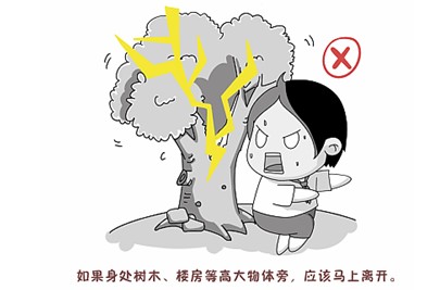 1、如果身处树木、楼房等高大物体旁,就应该马上离开。采用下蹲的避雷姿势,注意双脚并拢。