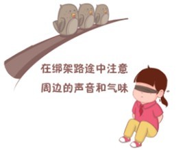 (1)在绑架路途中注意周边的声音和气味,如溪边的水声等。