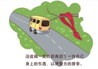 (2)可以沿途在绑匪不注意的情况下,隔一定的距离扔下一件自己随身的物件,以便警方的搜索。