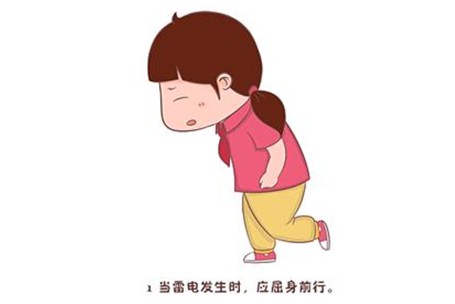 ① 当雷电发生时,如须远离空旷处或其他危险场所时,应屈身前行。