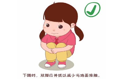 ③ 下蹲时,双脚应并拢以减少与地面接触。