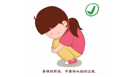 ② 下蹲时应尽量降低重心和减少人体与地面的接触面积。