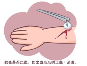 (1)检查是否有出血,如有出血应及时进行止血和消毒。