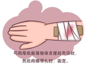 (2)可用厚纸板等物体支撑起夹伤处,然后用绷带扎好、固定。