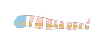 (1)将长夹板置于伤肢外侧,其长度应从腋下至脚跟,两下肢并列对齐,用绷带分段固定。