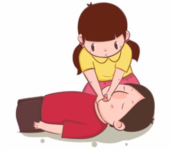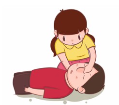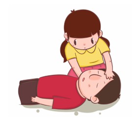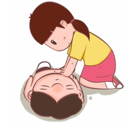 (4)施救者用右手食指与中指将伤者的下巴轻轻抬起,左手同时轻压。