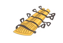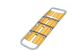 铲式担架是由左右两片铝合金板组成。搬运伤员时,先将伤员放置在平卧位,固定颈部,然后分别将担架的左右两片从伤员侧面插入背部,扣合后再搬运。