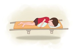 (2)侧卧位: 在排除颈部损伤后,对有意识障碍的伤员,可采用侧卧位。以防止伤员在呕吐时,食物吸入气管。伤员侧卧时,可在其颈部垫一枕头,保持中立位。