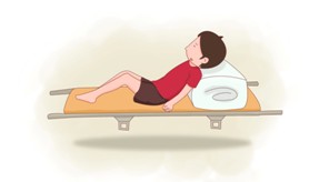 (1)仰卧位: 对所有重伤员,均可以采用这种姿势。它可以避免颈部及脊椎的过度弯曲而防止椎体错位的发生;对腹壁缺损的开放伤的伤员,当伤员喊叫屏气时,肠管会脱出,让伤员采取仰卧屈曲下肢姿势,可防止腹腔脏器脱出。