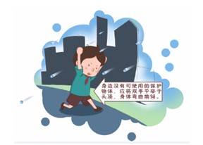 (2)如在室外空旷处,应迅速将衣服、书包等随身物品遮挡头部,起到保护作用。