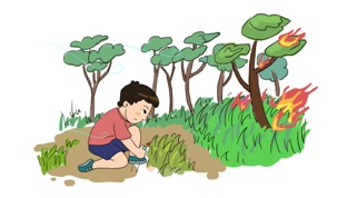 (3)开设避险区域。在林火离自己还有一定距离并且时间充裕的前提下,可迅速给自己划定一个避险安全位置,并清除可燃物,采用除草、翻土、浇水等方式打上隔离带,等待火的通过。