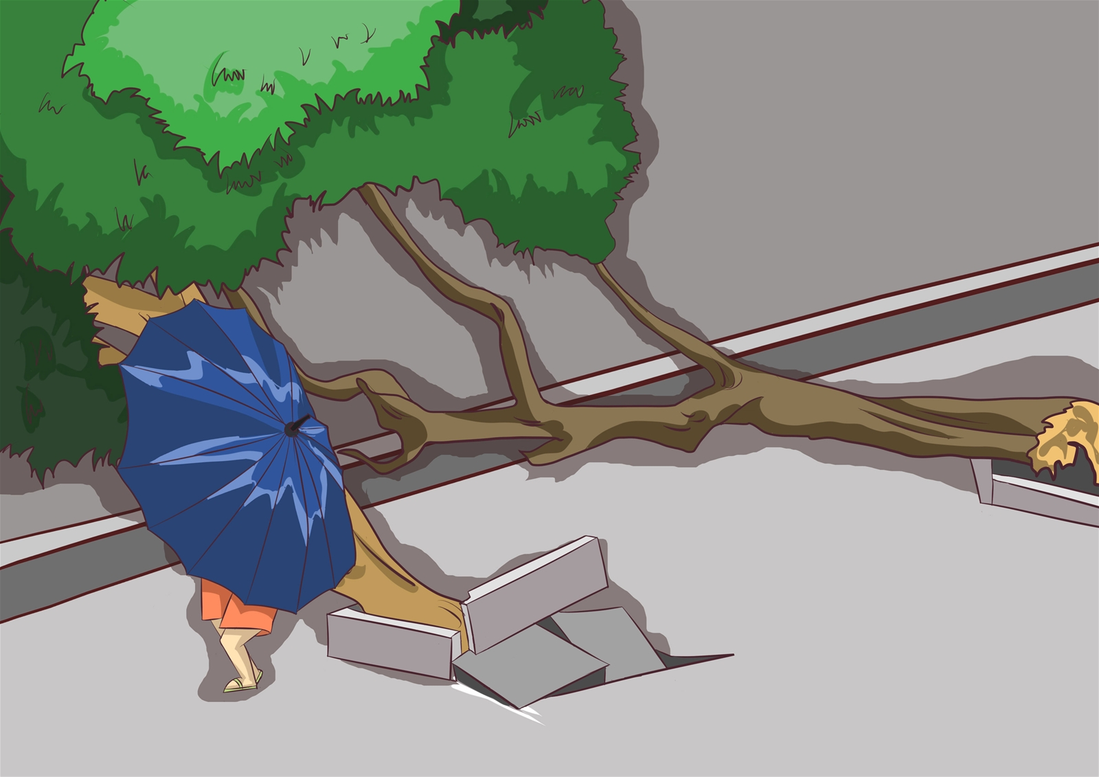 (7) 骤雨忽停忽落:当高云出现后,云层渐密渐低,常有骤雨忽落忽停, 这也是台风接近的预兆。
