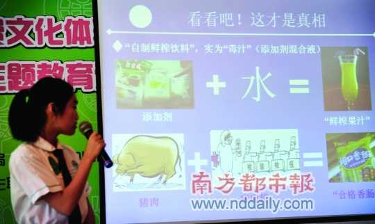 据中山市消委会消费指导部主任张泳权介绍,此次消费体验活动中山市共有14所大、中院校学生队伍参加,围绕“食品健康安全”主题进行消费体验活动及调查,他们的调查报告最终反映出了不少现今社会上存在的消费、食品安全等方面的问题。而最终这些问题也得到了妥善的解决。