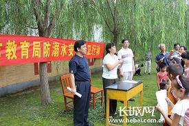为防范学生溺水事故的发生,保障学生生命安全,7月31日,在邢台市教育局驻威县工作组的倡议下,威县杏园屯村举行了由驻村干部、校长、教师、家长、学生等150余人参加的“五方照面会”,共同签名支持“珍爱生命,预防溺水”活动,印发了《致学生家长的一封信》和《学生安全常识歌》,拉开了“暑期防溺水学生安全护卫行动”的序幕。