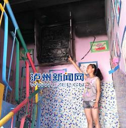 记者看到,这个安装在一楼和二楼之间的电表箱,所有电表已化为灰烬。位于二楼幼儿园的楼道已经被浓烟熏烤成了黑色。