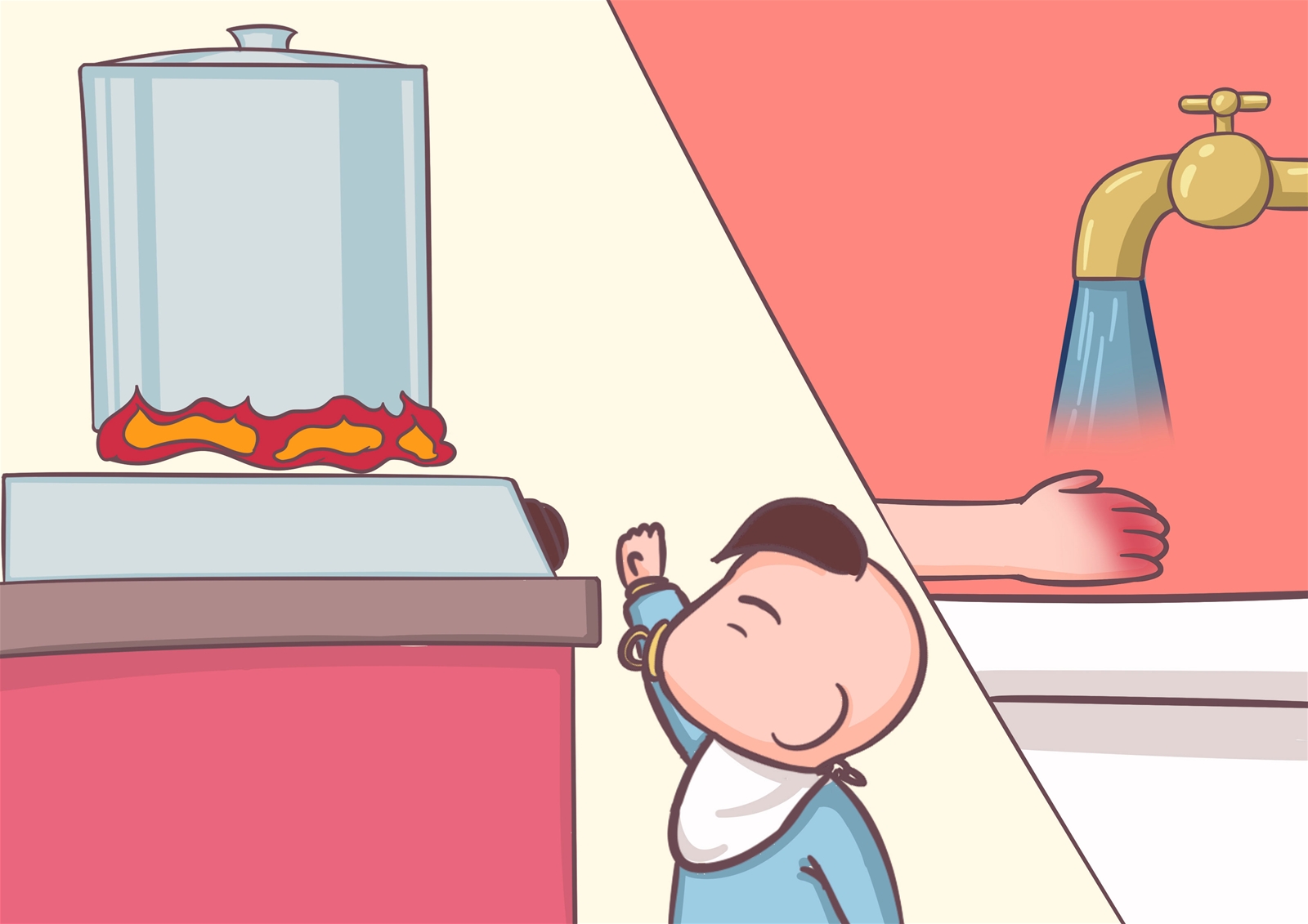 针对上述案例,医生建议家里的开水瓶一定要放在孩子够不到的地方,比如有门的橱柜里。现在不少的家庭都有饮水机,最好使用能把出水口关起来的类型,或者放在孩子开不到的地方,在不用热水的时候最好关掉电源,减少烫伤的机会。