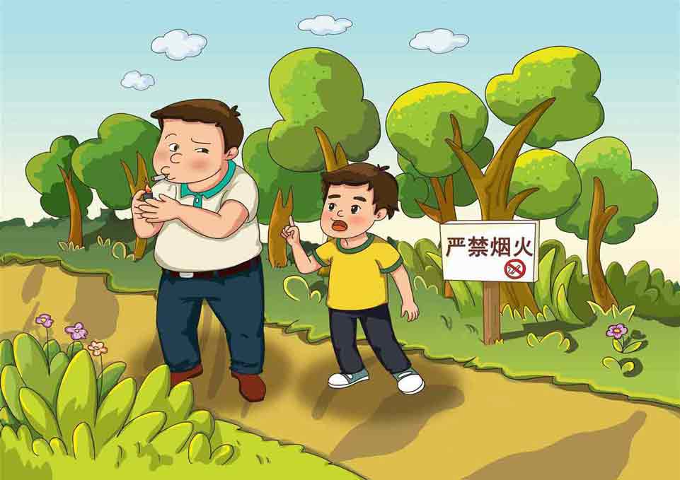 2、不在林区附近玩火,提醒家人防山火。