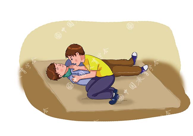 1.将伤者姿势摆正为仰卧位置,救援者应位于伤者右侧,以方便施救。